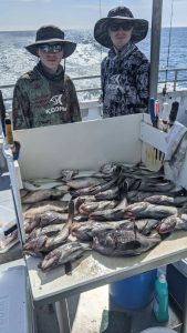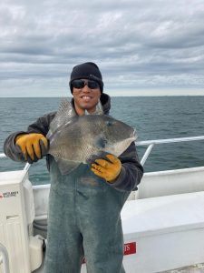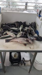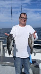The season has turned to fall, Captain Mike has returned to his home in Delaware for the winter, and Captain John Tighe is at the helm of the Miss Chris for our Wreck Special trips. These all day, eight hour trips have produced excellent catches of Black Sea Bass, Tautog, Triggerfish and small blues. Boat Limit catches kicked off the season for a few weeks and now the sea bass are moving to deeper water. Captain John is switching gears to Tautog as the season increases its limit to 4 fish per man November 15. There are not many fishable days this fall so we recommend booking as soon as possible!