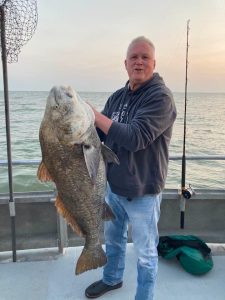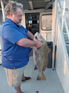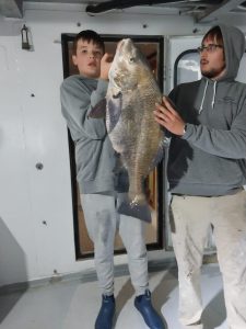 Captain John Tighe reports Drumfish up to 60 pounds!