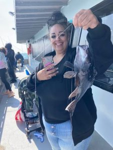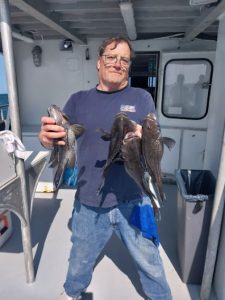 Some humphead Sea Bass were found with an abundance of smaller throwback Black Sea Bass on recent morning and afternoon half day trips. Steady action on salted and fresh clams. The salted clam seems to work better as it stays on the hook better. Some Blues were mixed in. Not much on Fluke yet offshore as the water surface temps are struggling to get over 60 degrees this spring.